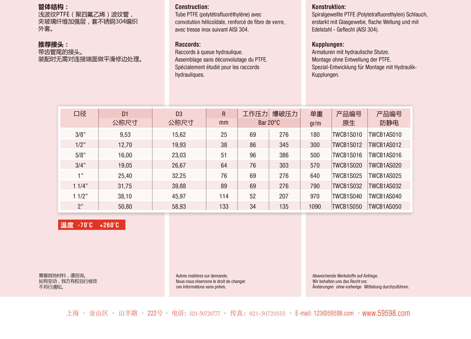 | 序号 | 产品编号 | 名称 | 型号 | 工作压力(bar) | 内径(mm) | 外径(mm) | 售价 | 订购数量 |