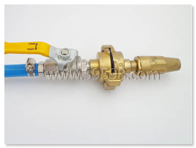 如左图可见,这是格卡喷头常规配套总成(宝塔水管接头、球阀、格卡内螺及格卡喷头组合而成),比水枪体积更小,拆卸更方便。